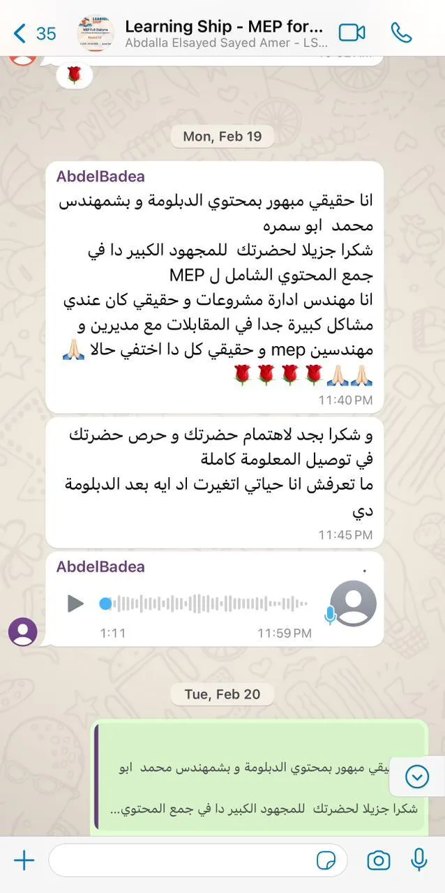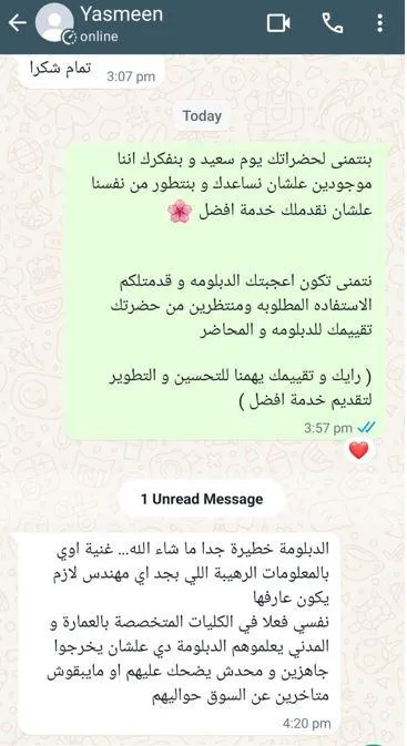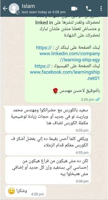 دعم شخصي مباشر عبر واتساب ومجتمع تفاعلي.